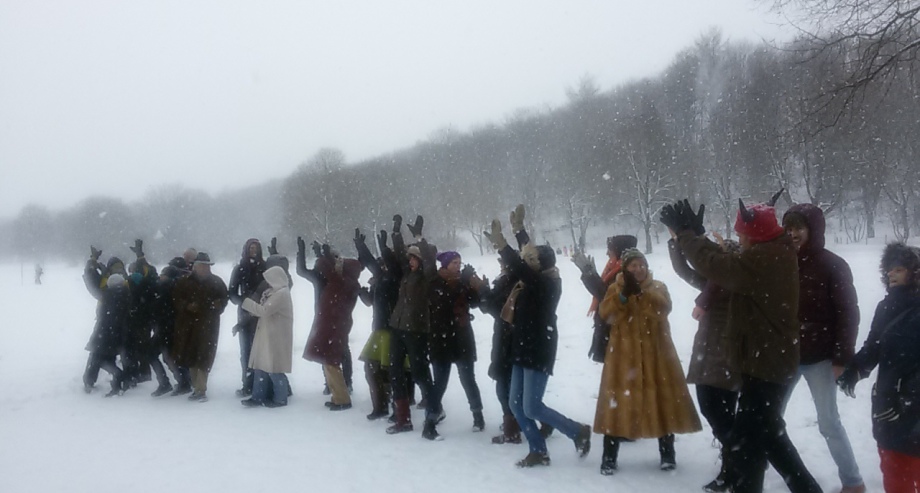 Zur Vorbereitung machen wir Laughter Wellness, eine sanfte Art von Lachyoga, bei der das Wohlbefinden im Vordergrund steht. Und wir spielen mit unserem inneren Kind.